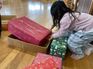 そのあとは、プレゼント運びリレーをしました。お兄ちゃんお姉ちゃんが率先して並んだり、教えてくれたり、、