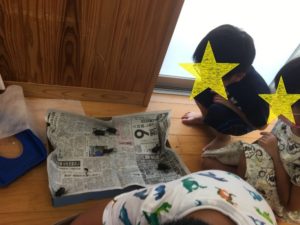 「おっきいのがいたよ」「戦っている」と言いながら楽しそうな姿が見られました。