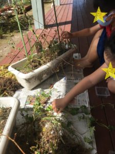 子どもたちも一緒に、「小さいね」と言いながらタネを探して取ってくれました。