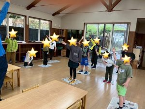 みんなで新聞紙じゃんけんと