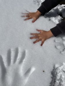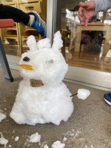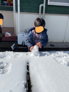 お休みをあけても次の日まで雪が積もっていたので、少しだけ外に出て雪遊びをしました。