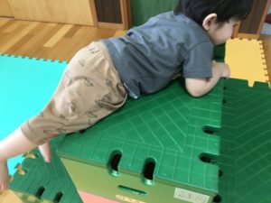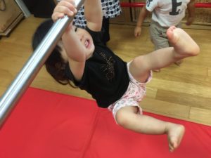 保育者が5数えている間、一生懸命ぶら下がっていました!