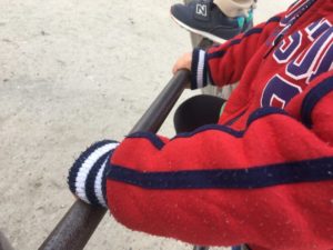 ちゃんと手は保育者の身体を掴んでいました。