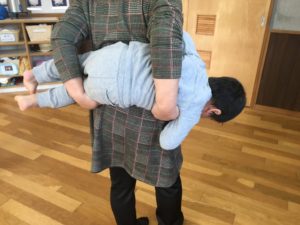 保育者に横抱きされて歩いてみたり・・・