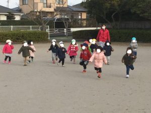 「寒くないもん!」と張り切る子どもたち。