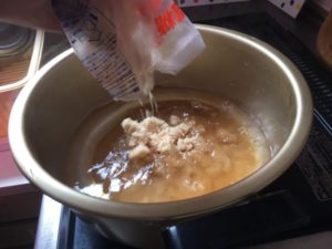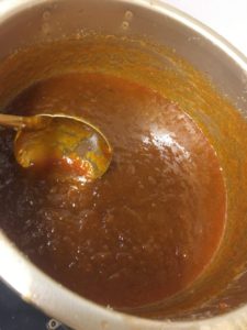 三温糖を入れて、ぐつぐつ煮込んで・・・