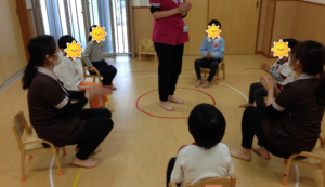 みつばちグループさんのお部屋からは掛け声だけでなく