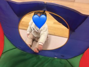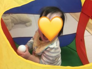 以前は先生とのやりとりが多かったですが、お友達同士でも「ばぁ!」とやりとりする姿が見られるようになり、成長を感じたところでした🎵
