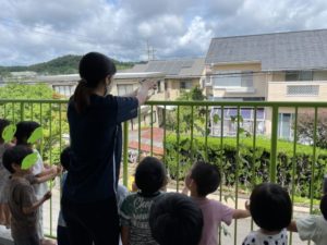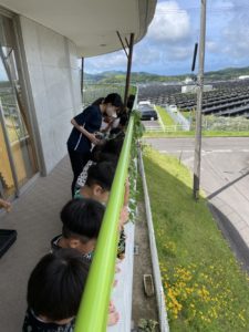 虫かごのなかのちょうちょうを、みんな興味深々で覗き込みました。