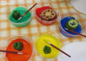 やさいや手がたをペッタンペッタン✋