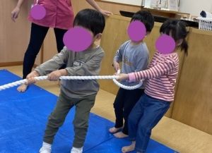 「うんとこしょ!」と引っ張るお友だち。