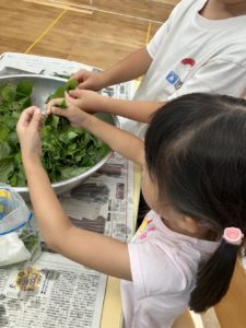 らいおんグループのお友達が 丁寧にちぎり、 綺麗に洗って、 拭き取りまで。。