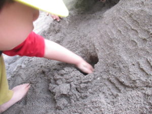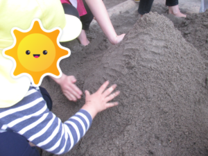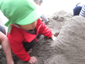 おててで優しく叩いて砂を固めるのも上手👏✨