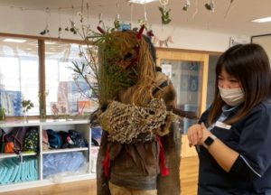 これまでの活動で準備してきた鬼のお面に豆箱、そして、いわしとひいらぎも飾って豆まきを楽しみました♪