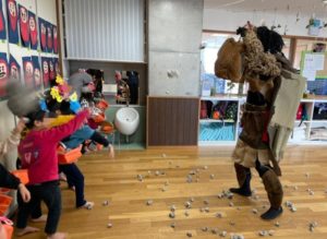 そんな中、豆まきを楽しんでいると………、、、