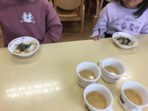 今年の恵方は北北西、ゆめぐみ、つきぐみ、そらぐみのお友達はちらし寿司