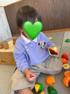 手先の力がどんどんついて、包丁で食べ物も切ることができるようになったつき組さんです🎶
