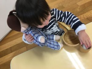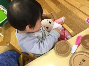 お人形の赤ちゃんに「あ〜ん」「ど〜ぞ〜」と食べさせたあげたり😊