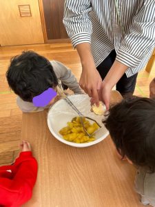蒸したお芋をみんなのパワーで
