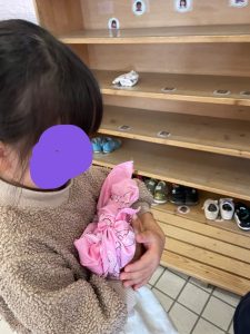 お弁当を落とさないように大事に持って