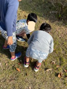 落ち葉やどんぐり、バッタ探しに夢中なお友達も♪