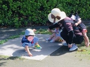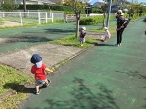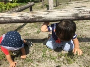 滑り台に登ったり、棒をくぐったり、公園のいろいろなものに興味を持って探検を楽しんでいるゆめ組さんでした☆