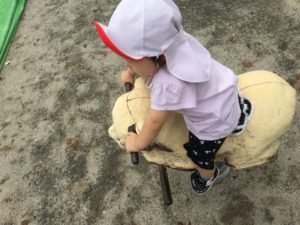 動物の乗り物に乗り、一生懸命揺らしてなる姿が、とても可愛らしかったです💕