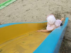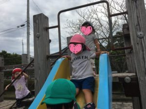 滑り台の横を持ちながら、バランスをとって滑る事が出来るようになりました😊