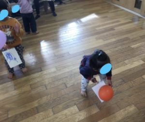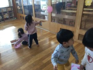 しばらく遊ぶうちに、風船をポーンと上に向かって打てるようになりました。