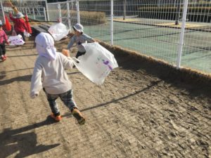 続いては・・“凧揚げ”!走っていく時の風の気持ちよさを感じながら上がる様子を楽しんでいましたよ♩