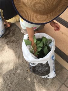 自分達で植えたお芋達、大きくなるのが楽しみだね💓
