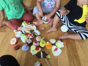 みんなでケーキを囲んでお皿に入れて、食べる真似をしてケーキパーティ🍰