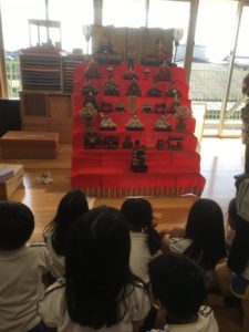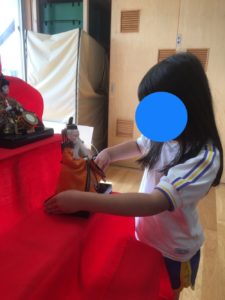 お雛様を初めて触ったお友達もいるようで、飾る時は少しドキドキした様子でしたが、無事に全部飾る事が出来ました。