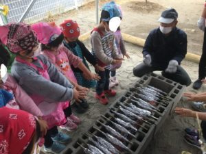 色々な種類の魚を毎日一つずつ知ってきたので、前の日の魚の観察では初めて見る種類の魚をたくさん、園長先生が持ってきてくださり、子どもたちも大興奮♩