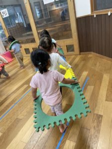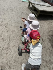 “かもつれっしゃ”の音楽に合わせて出発です🚃