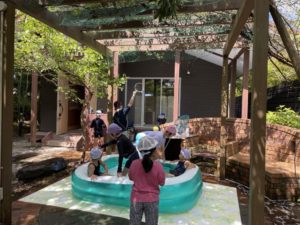 今日は、外で、水遊びとシャボン玉をしました。