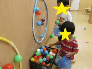 カラーボールを沢山出して、遊びました。