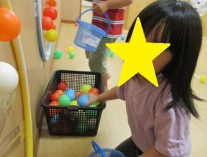 集めたボールは先生の持っていた大きな袋に入れたりも♪