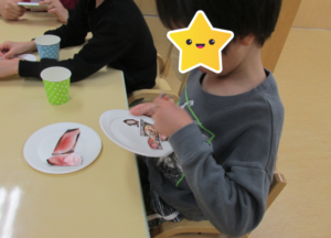 「せんせい、これすしだよ。」と