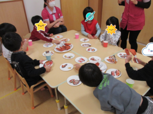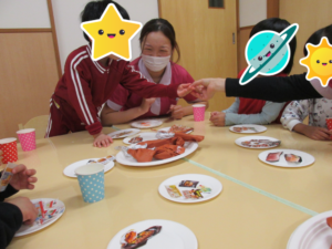 事務所の先生が「せんせいもたべたいな~」と声をかけると、