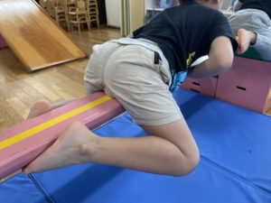 今日は以上児、そらぐみさんで巧技台遊びをしました。