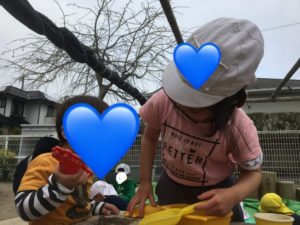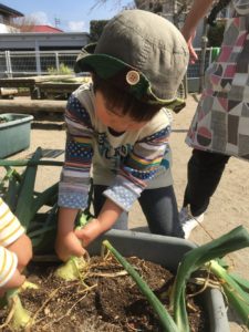こんなに大きな玉ねぎが取れましたよ♩とっても嬉しそうに袋に入れてお買い物気分を味わうお友達もいました。
