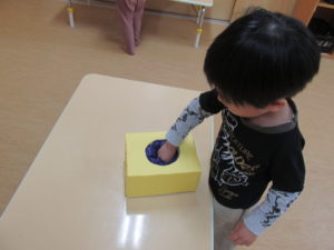 箱の中に入っている折り紙を一枚引いて、