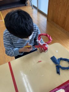 しめ縄の縄の部分は画用紙をねじります!