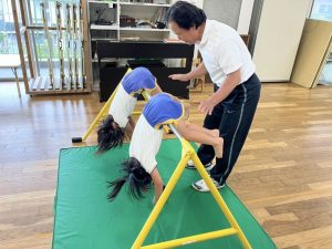 腕の力をつけるぞ~と、体育の先生に鉄棒を教えていただきました!