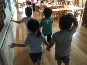 園長先生のところへ。園長先生の「あまいね〜」の言葉にとっても嬉しそうな子供たちでした。ピーマンに火を通してくれた給食室の先生たちにも渡しに行きました!
