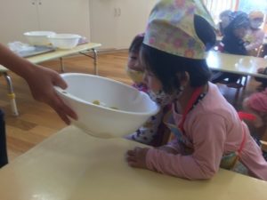 スイートポテト作りごっこで、作り方を覚えていたそら組さん。