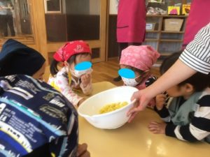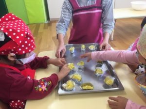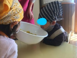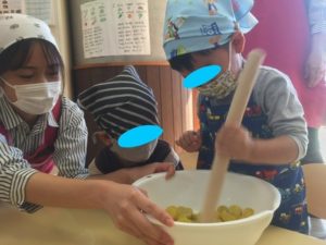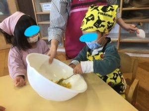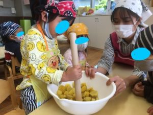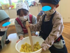 お芋が苦手なお友達も、みんなでおまじないをした、美味しいスイートポテトを最後まで食べることができました♪