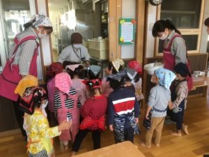 美味しそうに焼き上がったスイートポテトを給食室の先生が届けてくれました!