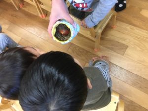 そして、去年のほし組さんにもらった鉢にチューリップを植えました♩何色のお花が咲くのかはお楽しみ!!みんなで成長を観察して行きたいです。